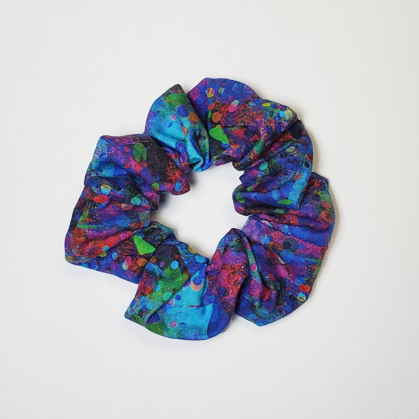 The scrunchie is like an artist's art piece. The printed design is full of cool colours and shapes